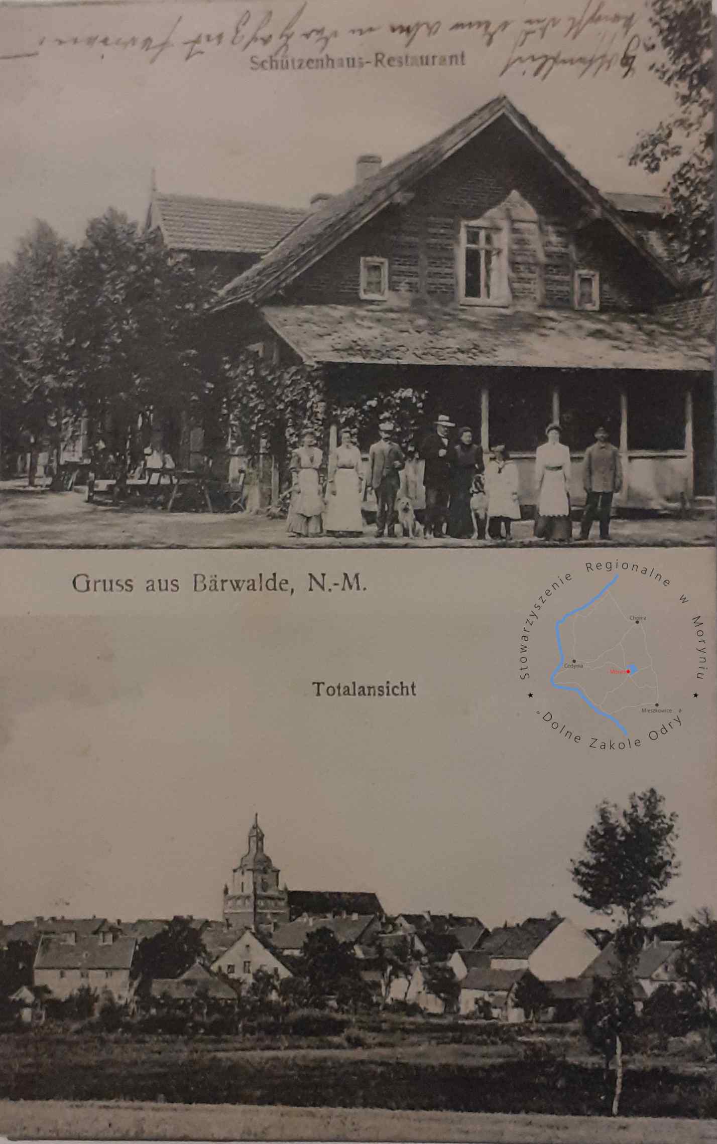Pocztówka bez obieguWydawca: Paul Sprenger, Buch- u. Papierhandlung, Barwalde (Neum.)MIESZKOWICE Pocztówka wielowidokowa, p...
