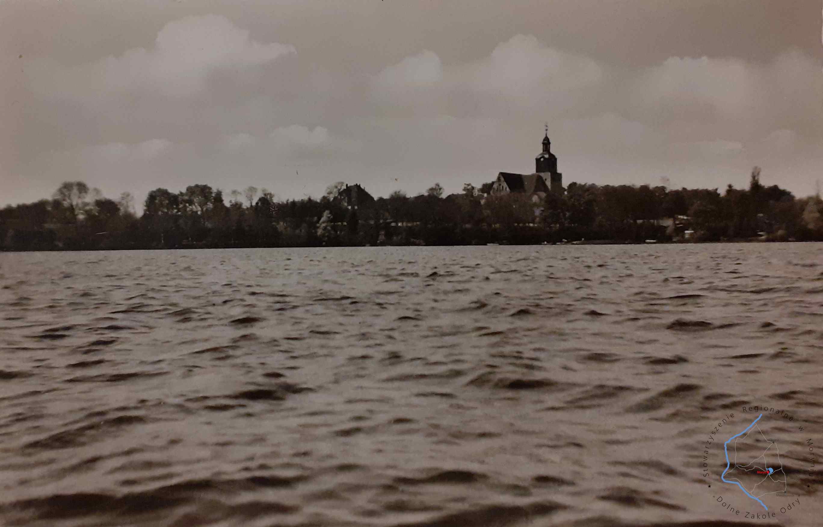 Pocztówka bez obieguWydawca: Markische Verlags- und Vertriebs GmbH, 23 Kiel (Kilonia)MORYŃ Widok na Kościół z jeziora Mo...