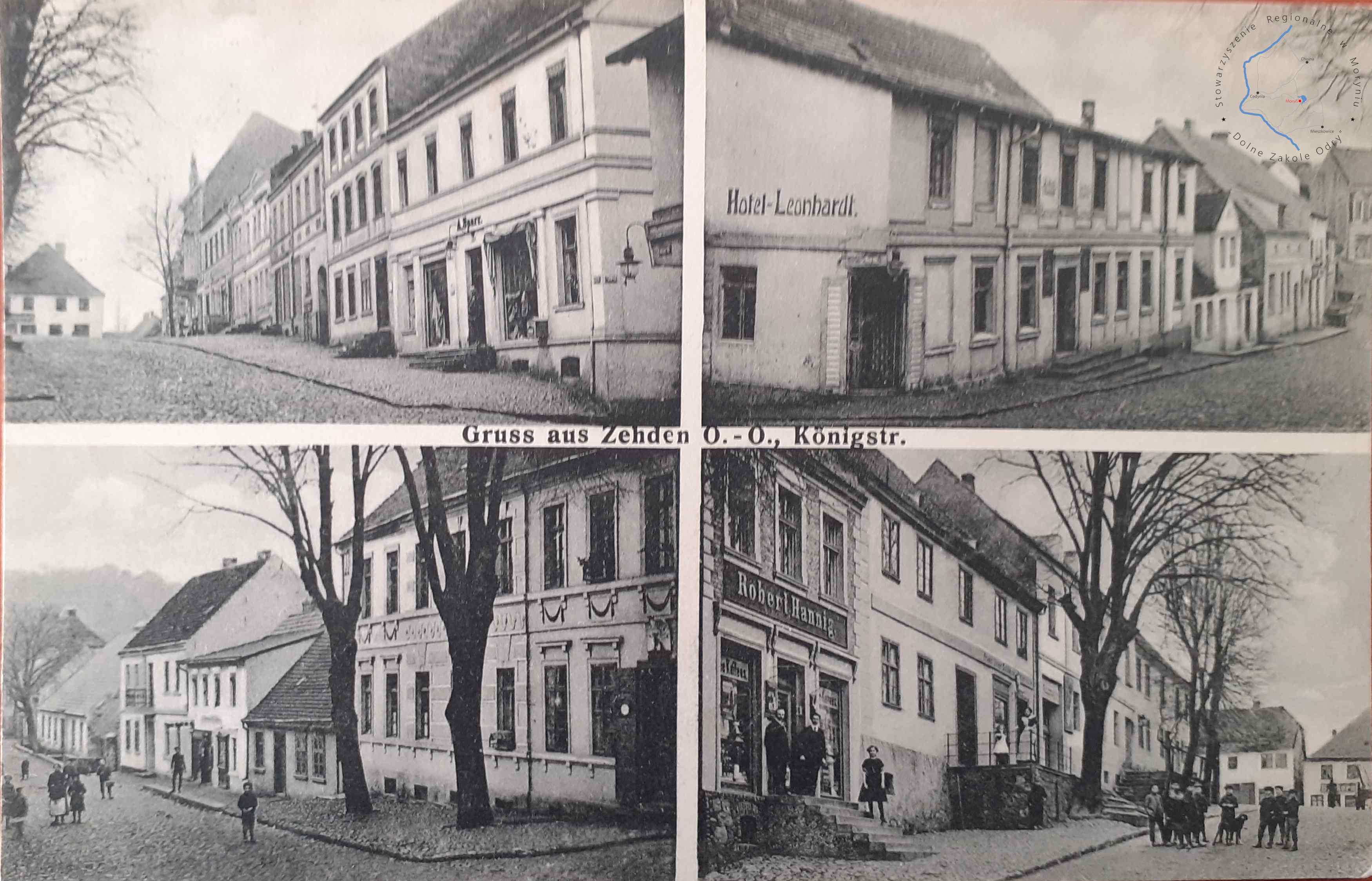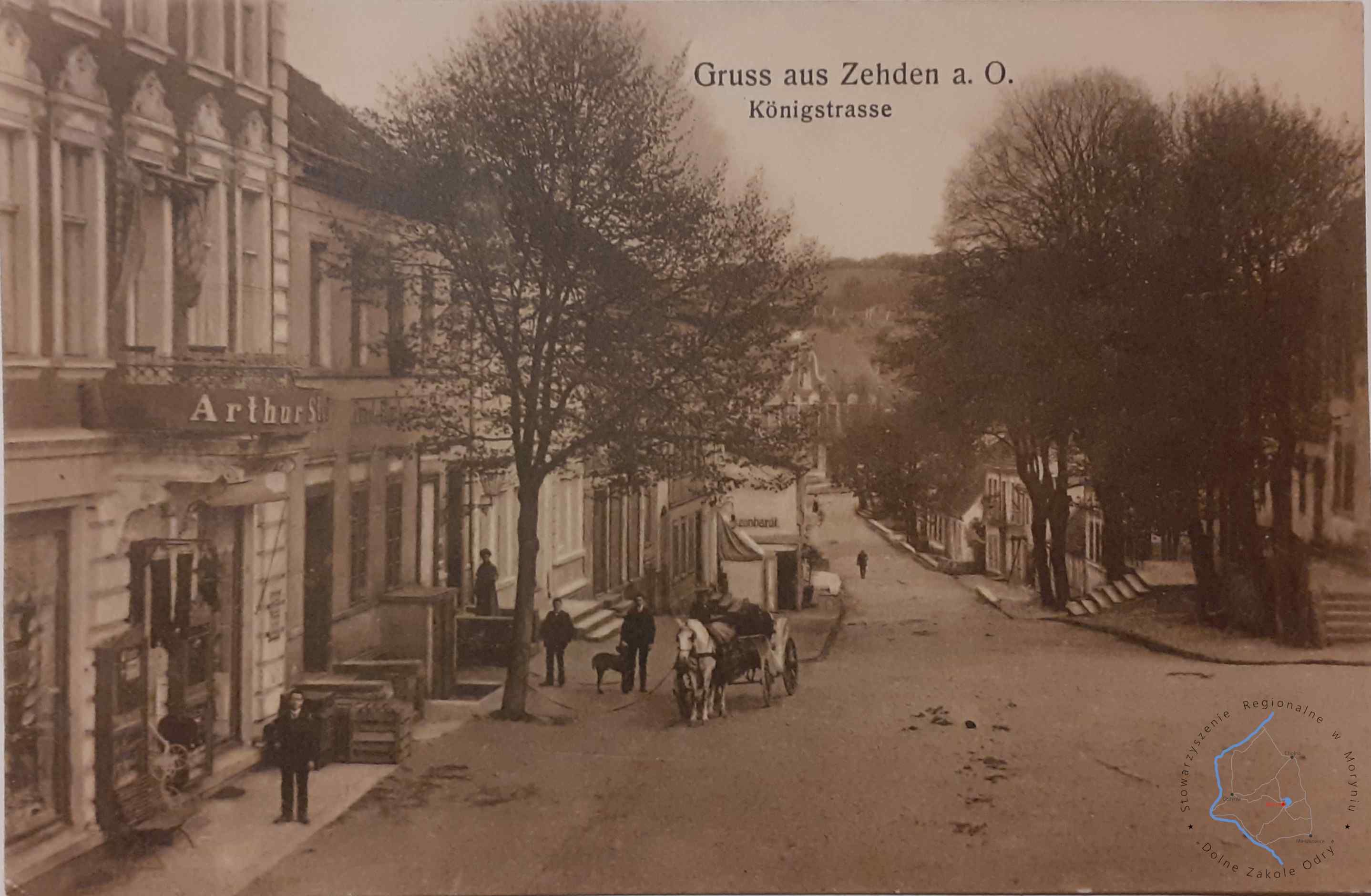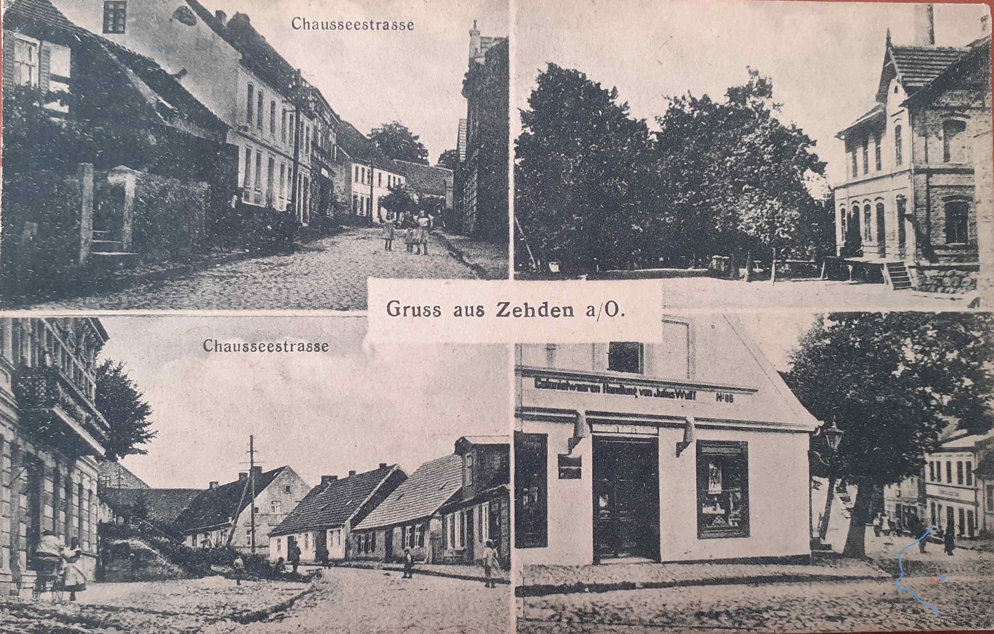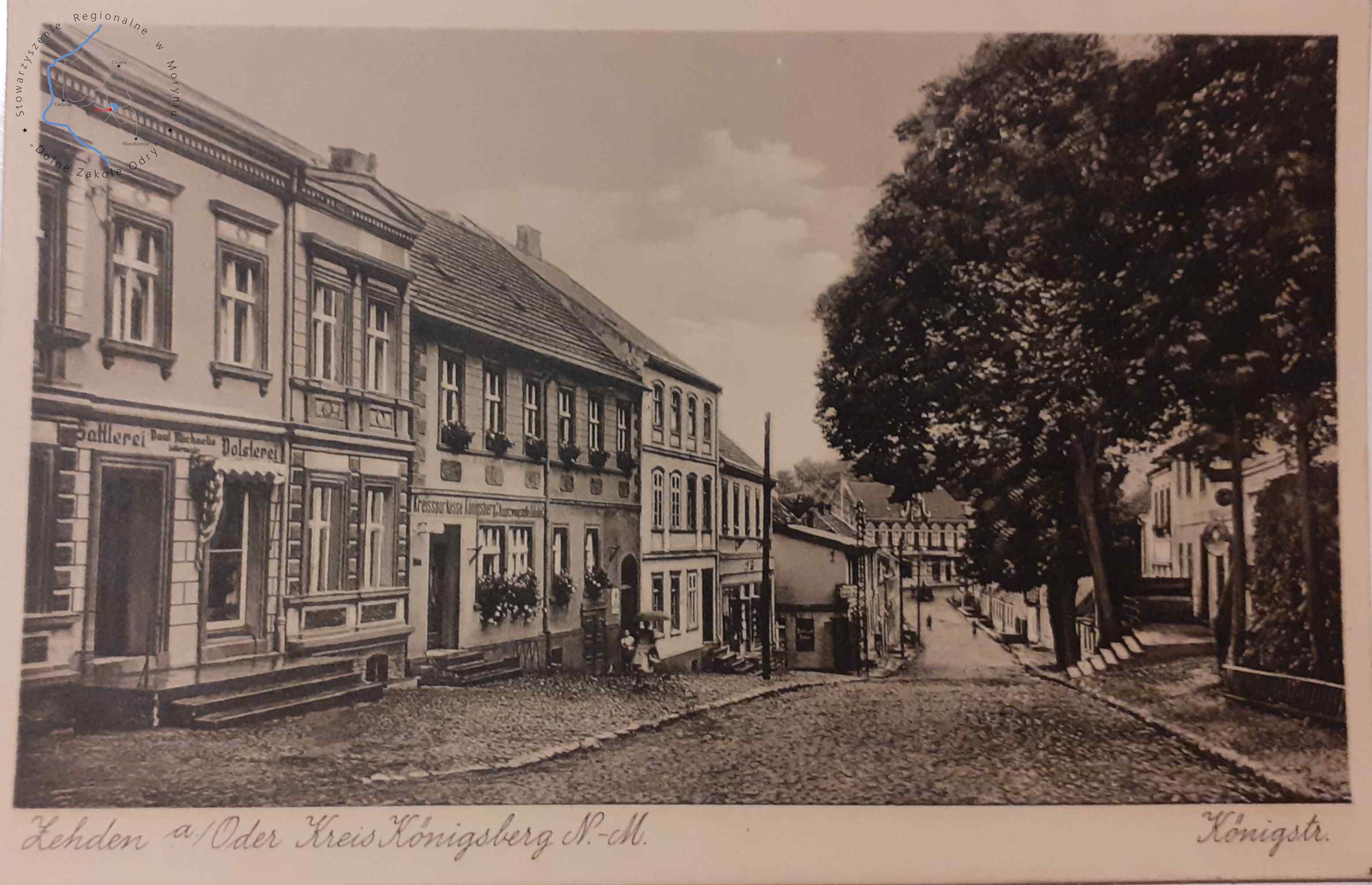 Pocztówka zapisana 29. 12. 1909 bez obieguWydawca: E. Rammin Photograph, Zehden 1909 (Cedynia) CEDYNIA Fragment ulicy S...