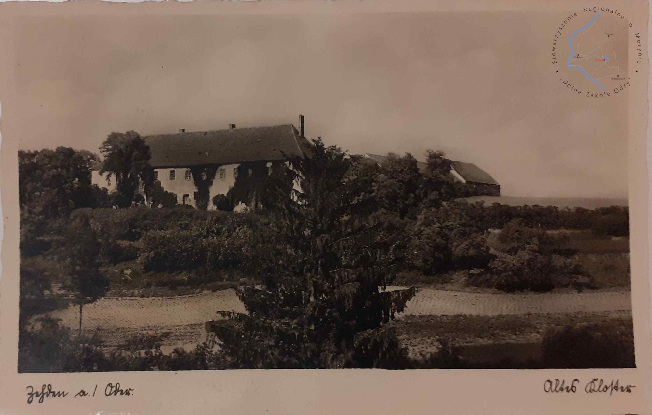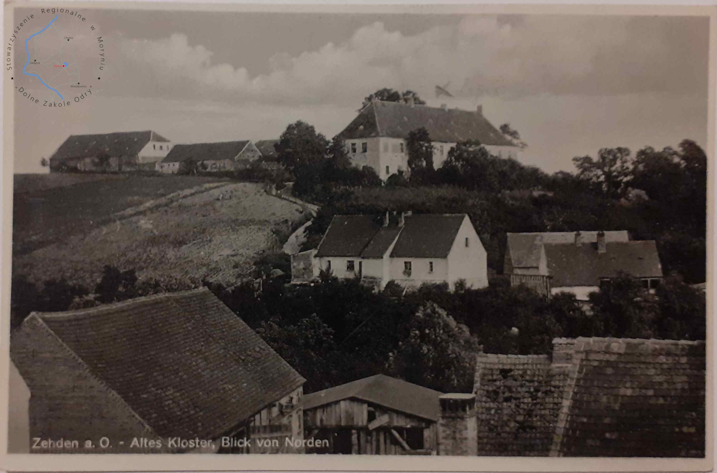 Pocztówka bez obieguWydawca: Ernst Rammin Photograph., Zehden a. O. (Cedynia) CEDYNIA Widok na klasztor Cysterek od po...