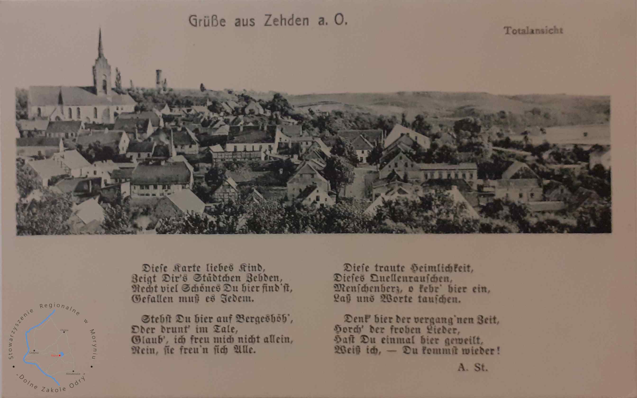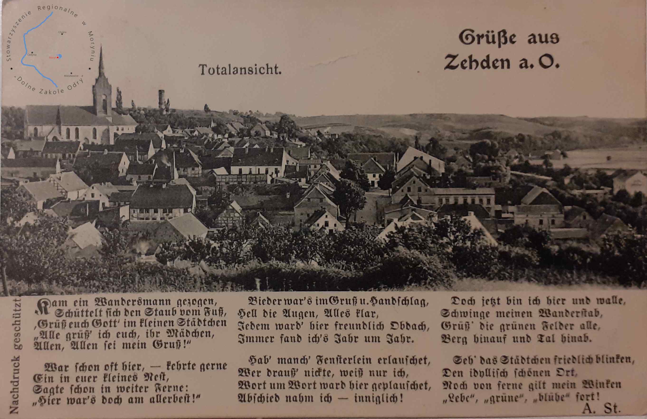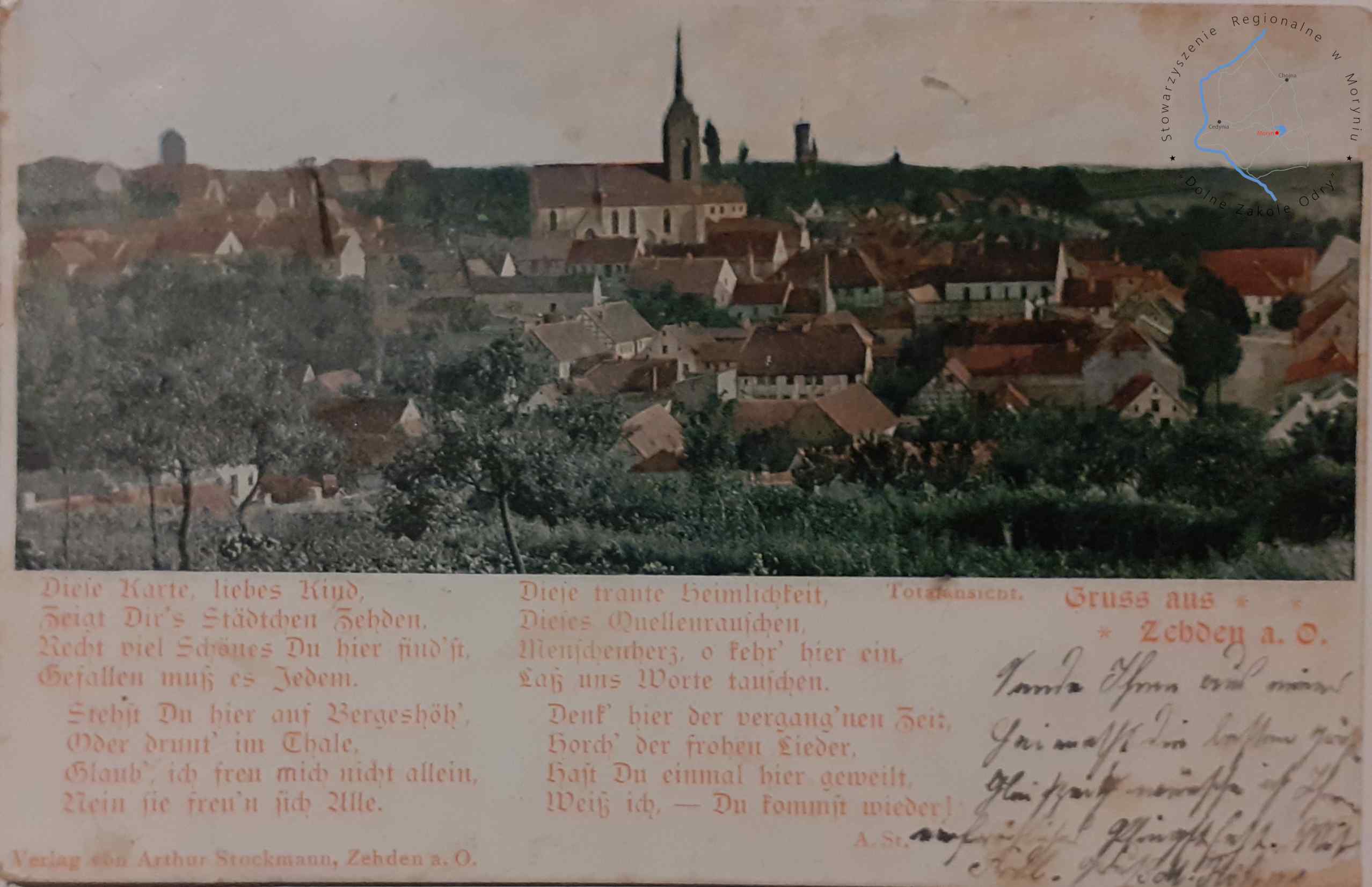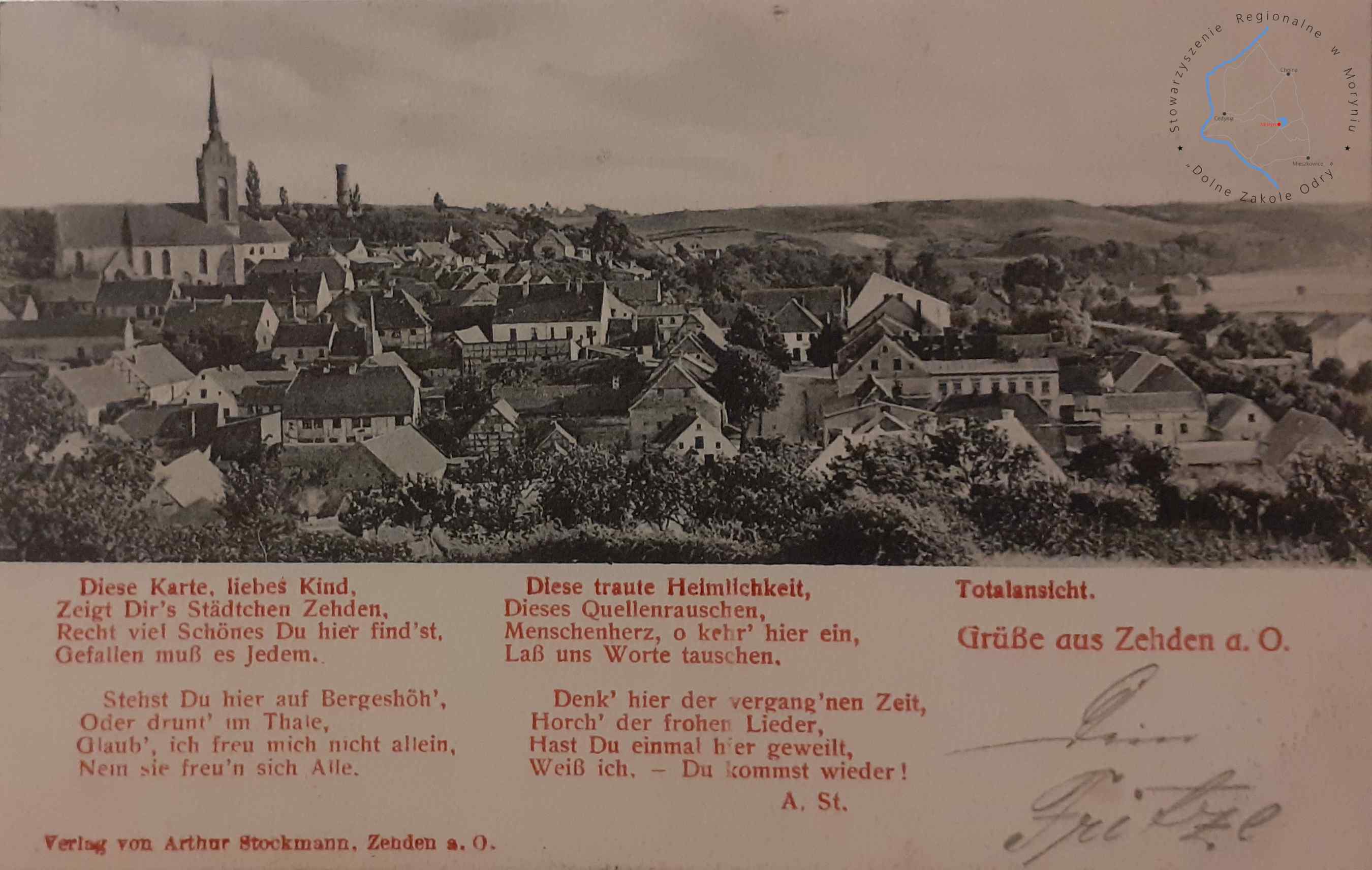 Pocztówka bez obieguWydawca: Arthur Stockmann, Zehden a. O. (Cedynia) CEDYNIA Widok panoramiczny