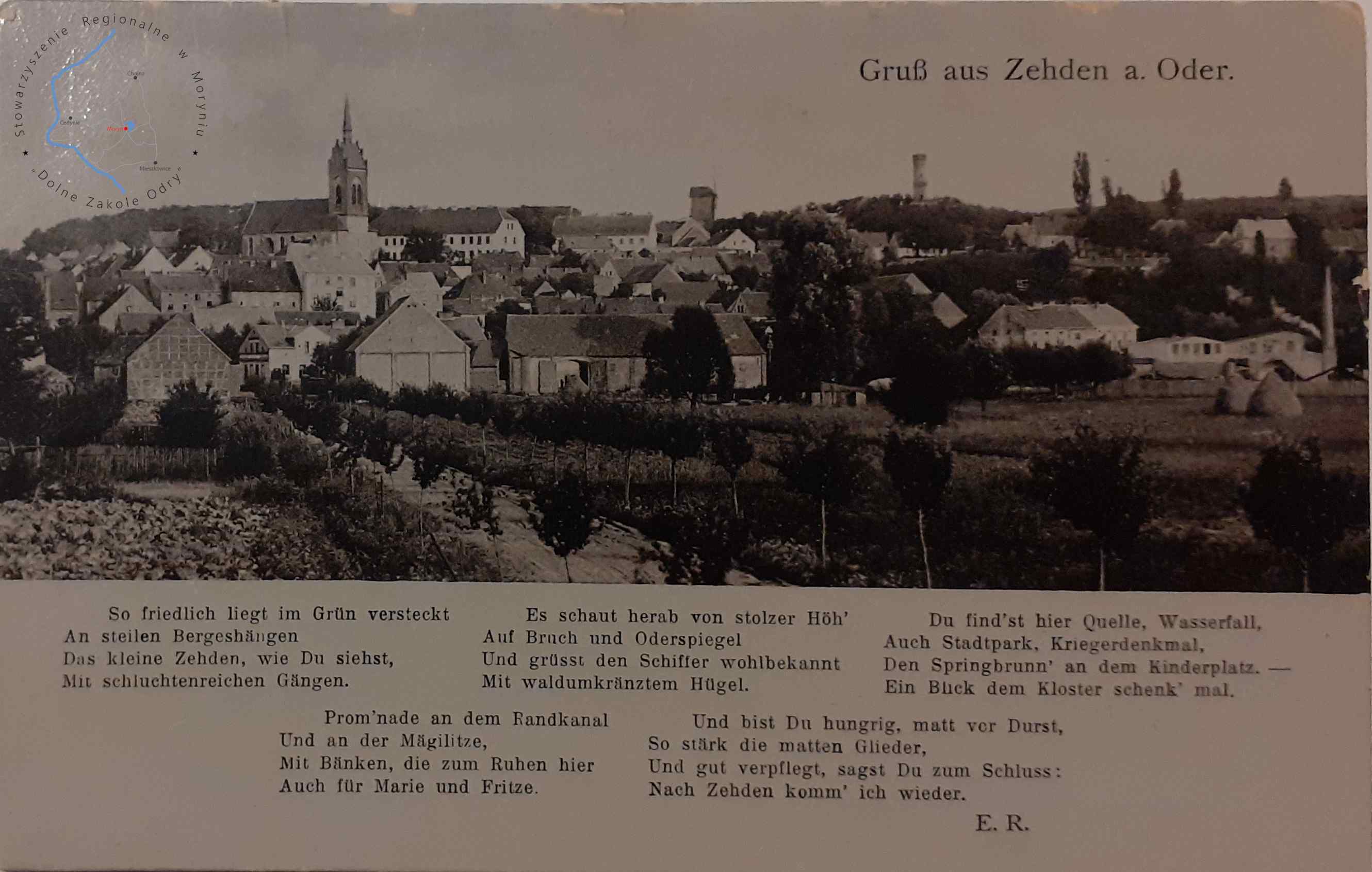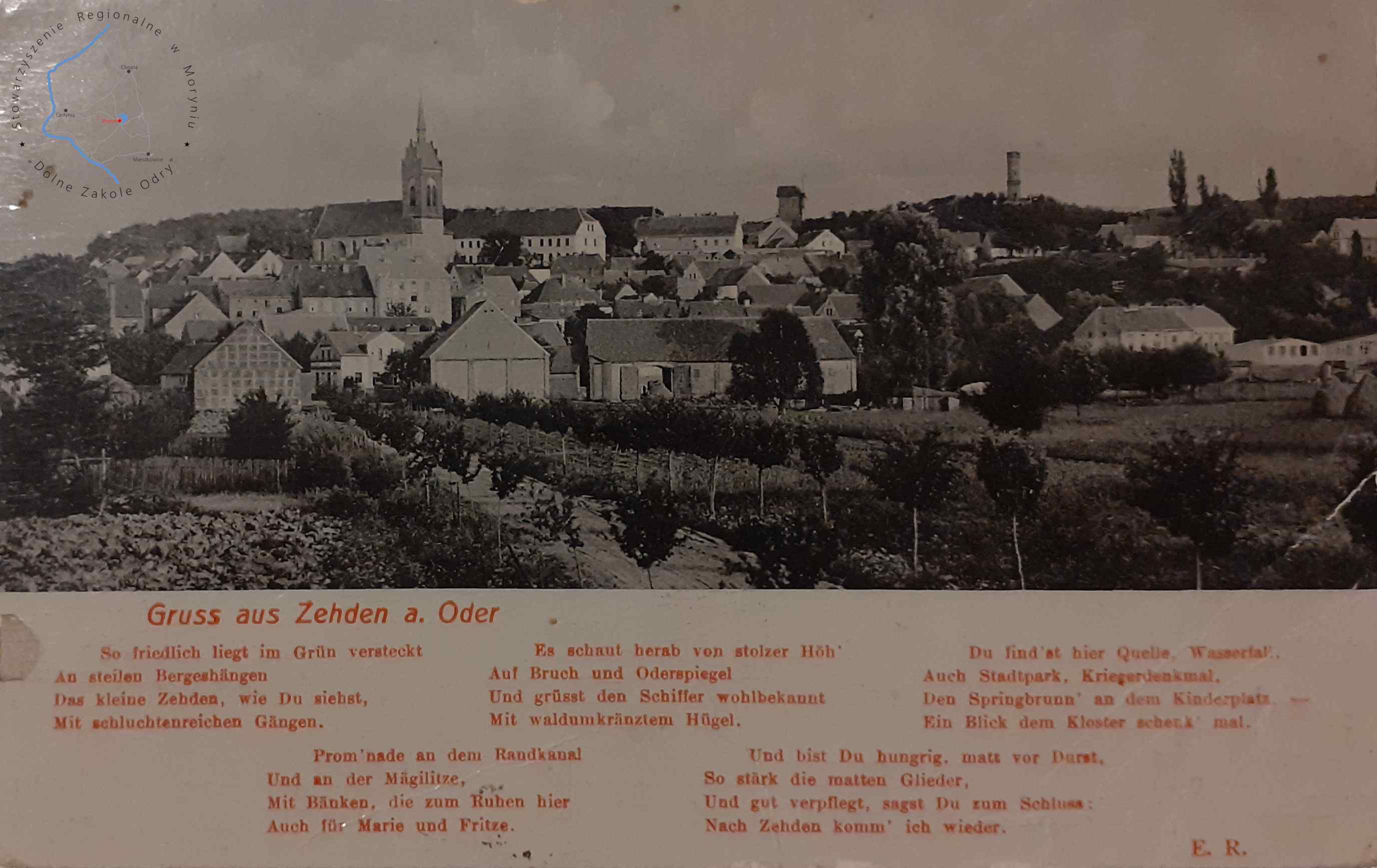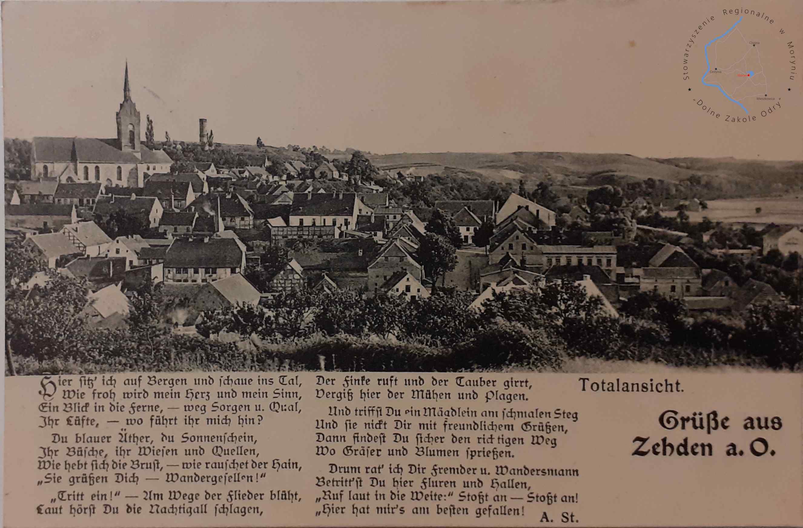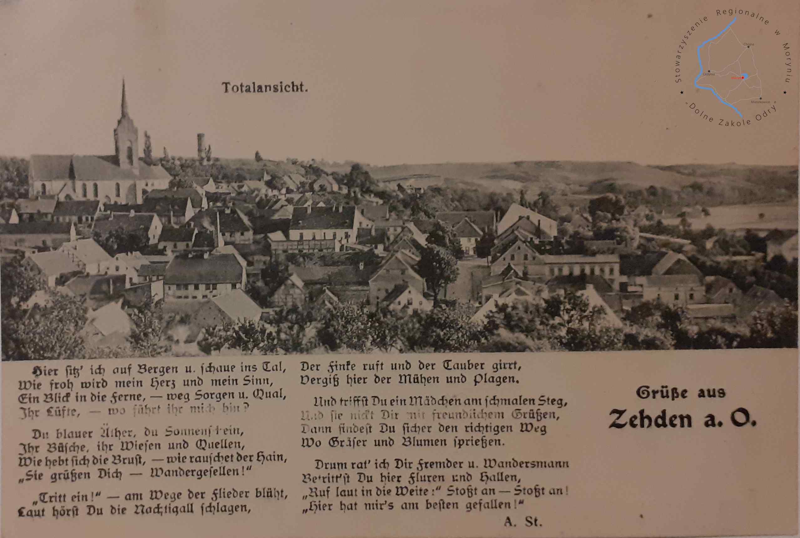Pocztówka bez obieguWydawca: Arthur Stockmann, Zehden a. O. (Cedynia) CEDYNIA Widok panoramiczny