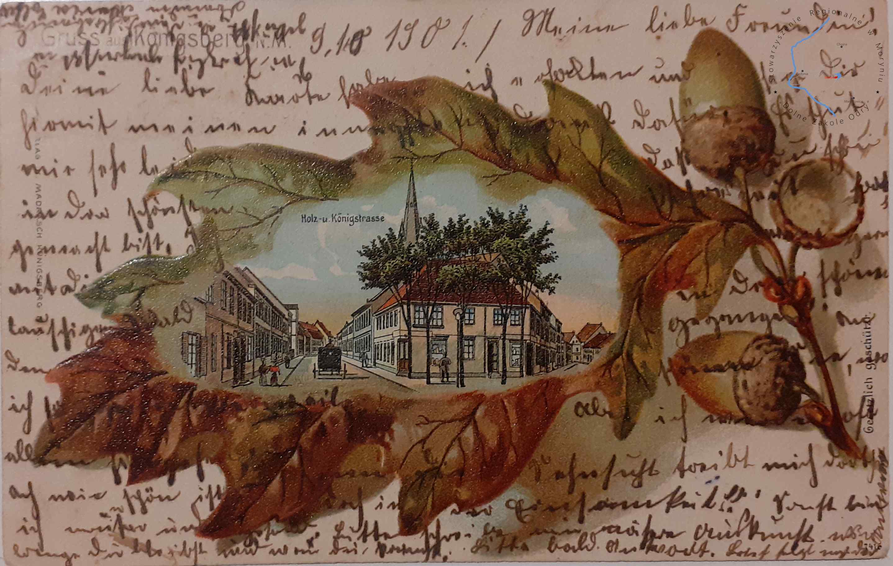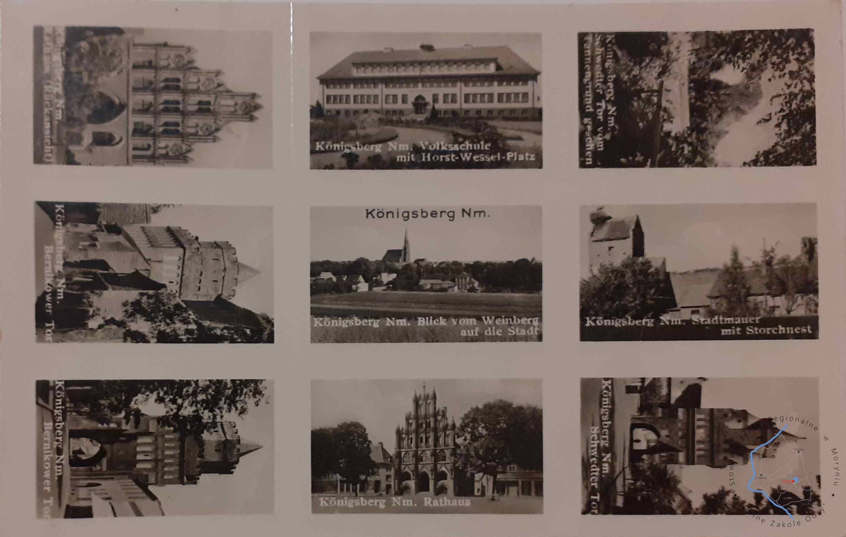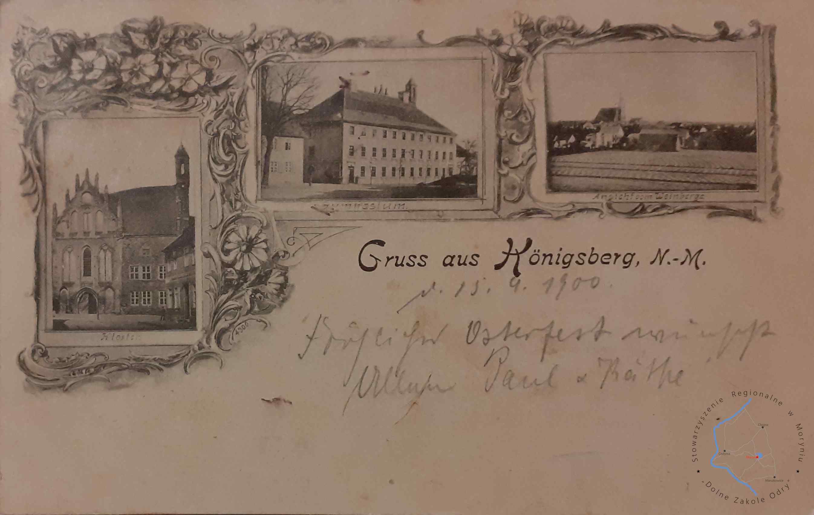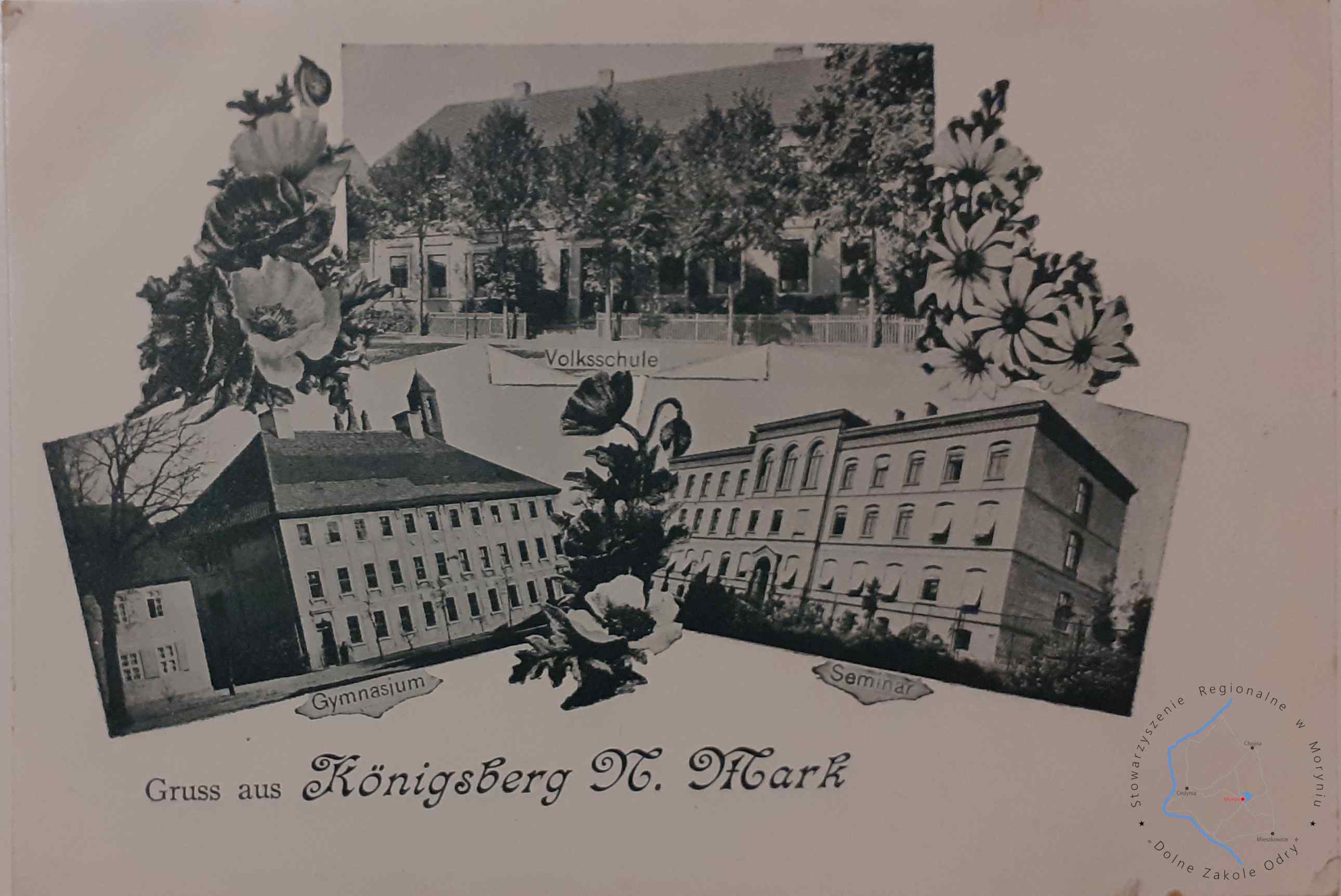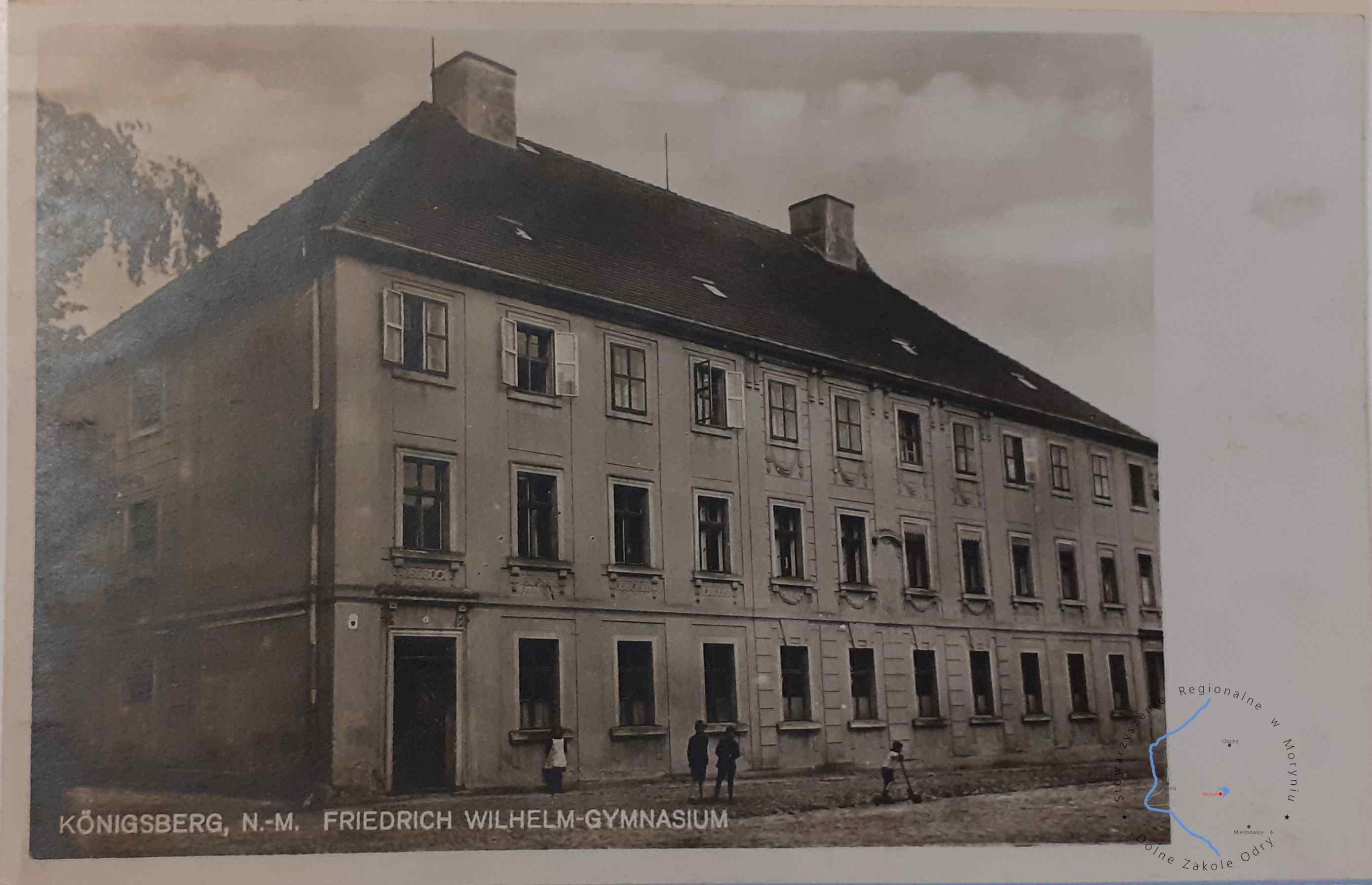 Pocztówka bez obieguWydawca: H. Madrasch u. J. G Striese, Konigsberg N.-M. (Chojna)FRIEDRICH WILHELM-GYMNASIUM dawna szkoła...