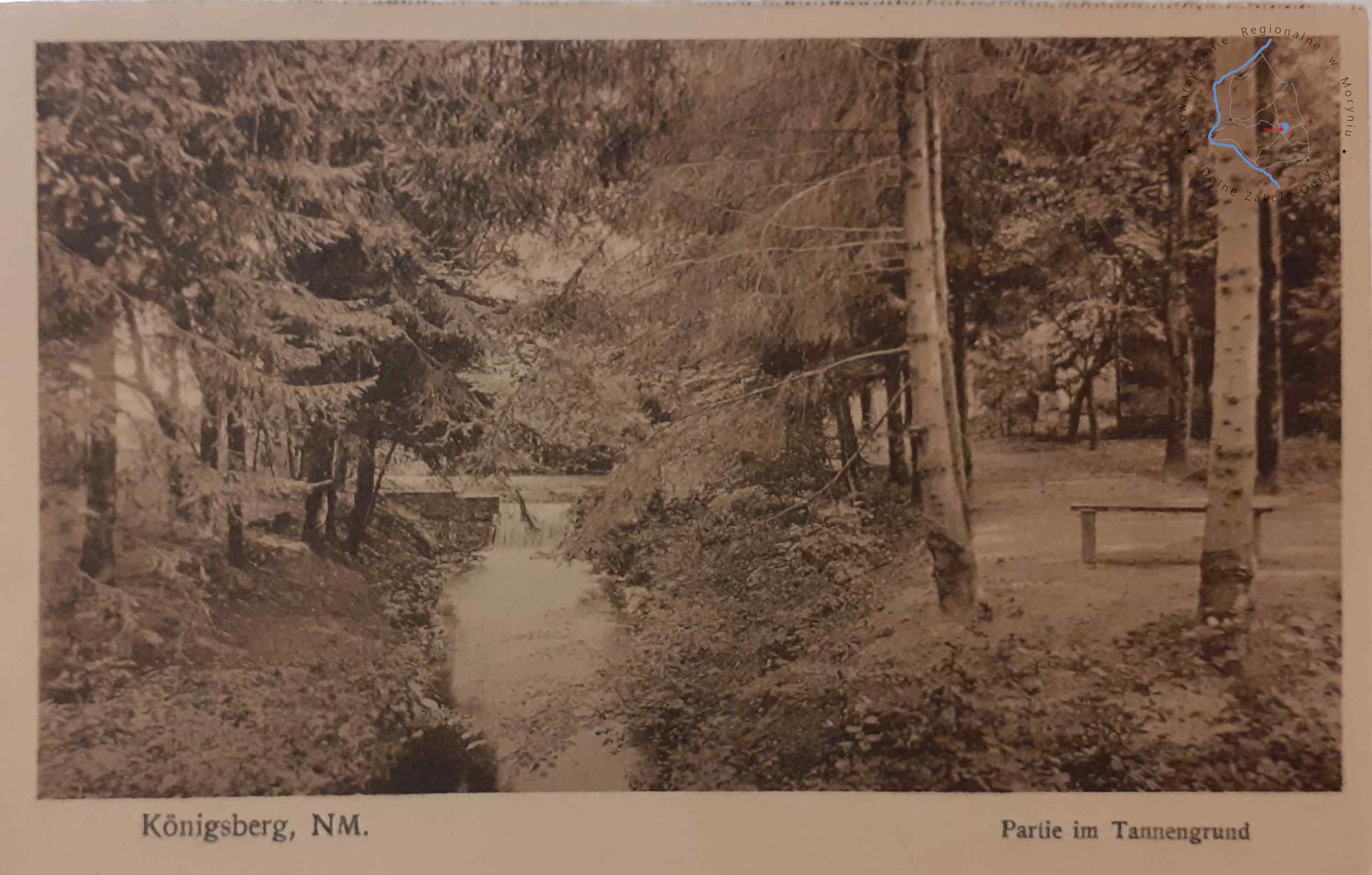 Pocztówka bez obieguWydawca: Gustav Reischel, Buchhandlung, Konigsberg, NM. (Chojna)CHOJNA fragment w “Tannengrund”