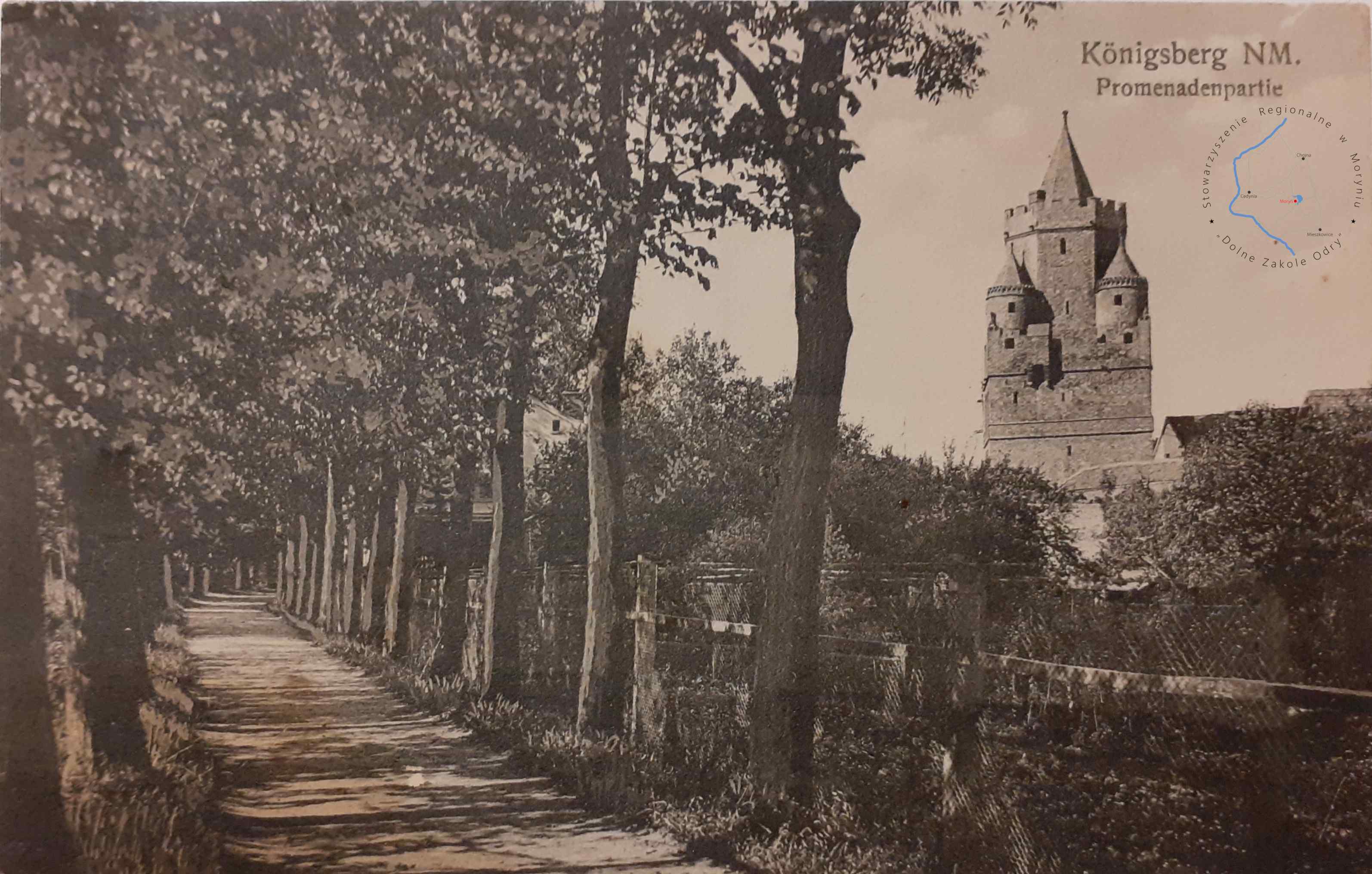 Pocztówka bez obieguWydawca: G. Reischel, Konigsberg N.-M. (Chojna)Wilhelmplatz (dzisiaj ul. Mieszka I-go)
