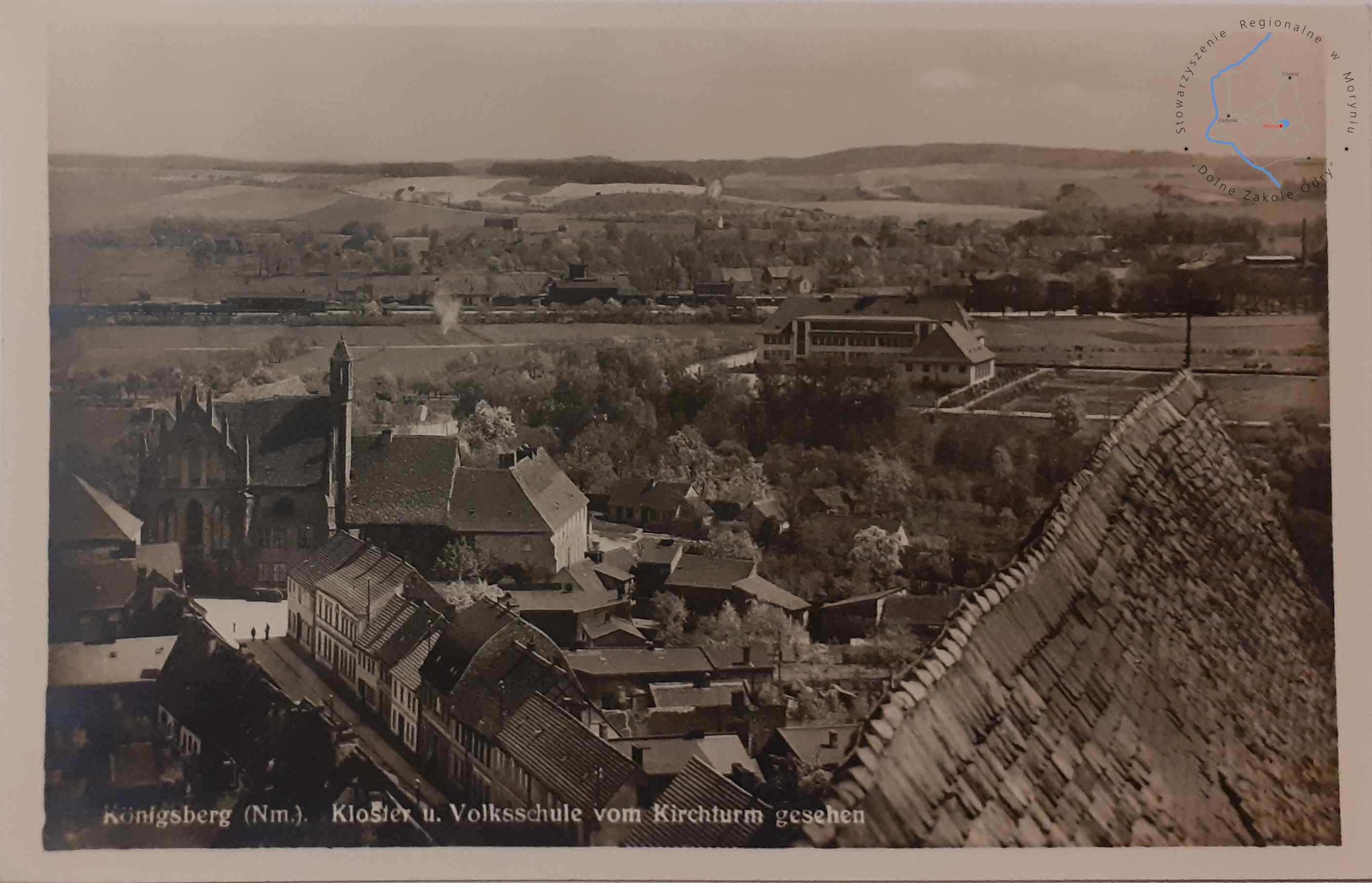 Pocztówka bez obieguWydawca: J. G. Striese - H. Madrasch Konigsberg Nm. (Chojna)Dawna szkoła Ludowa, obecnie części Zespo...