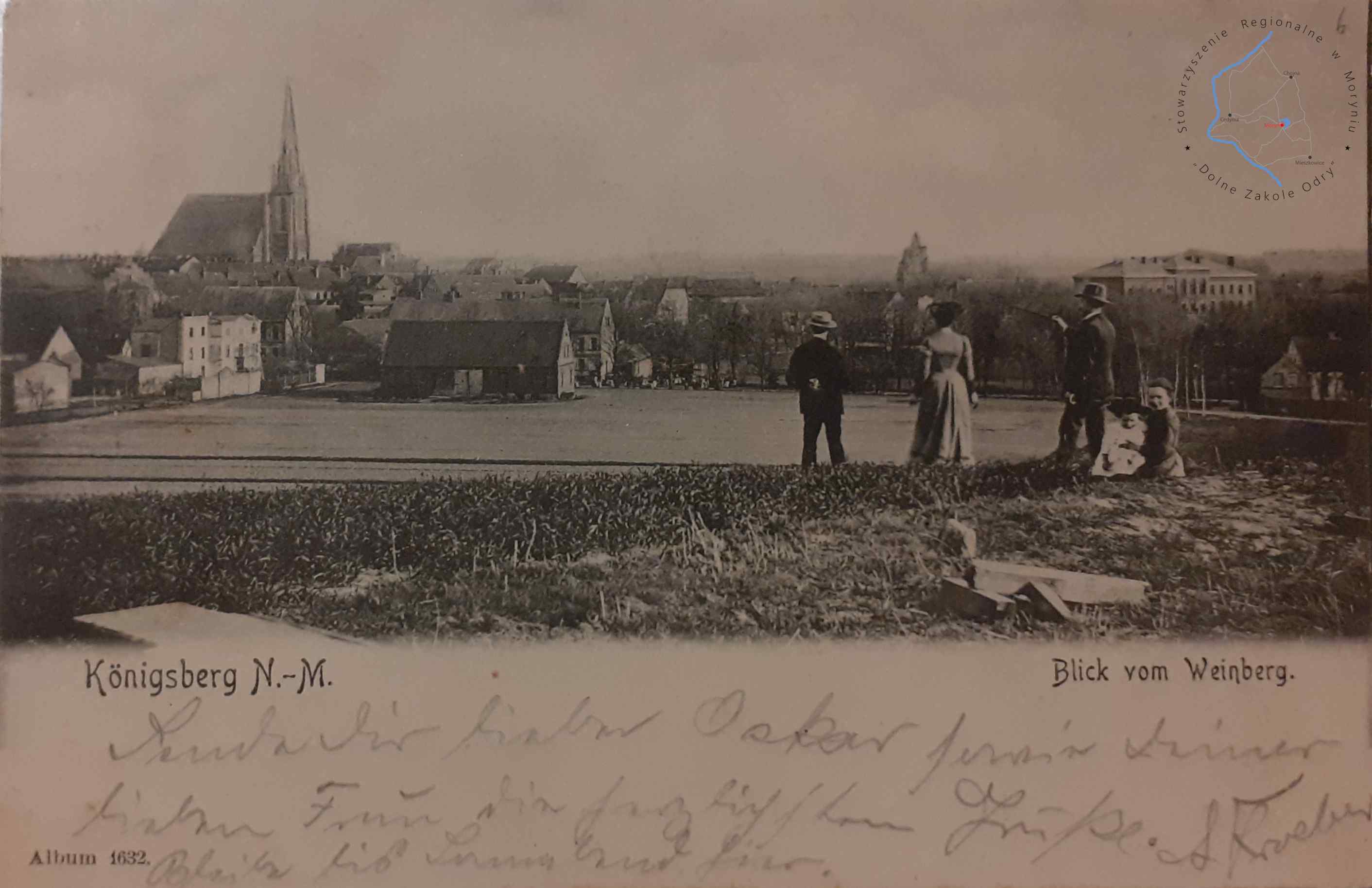 Pocztówka z obiegu, poczta Chojna 8. 8. 1906CHOJNA widok ze wzgórza Weinberg (Winnogóra)