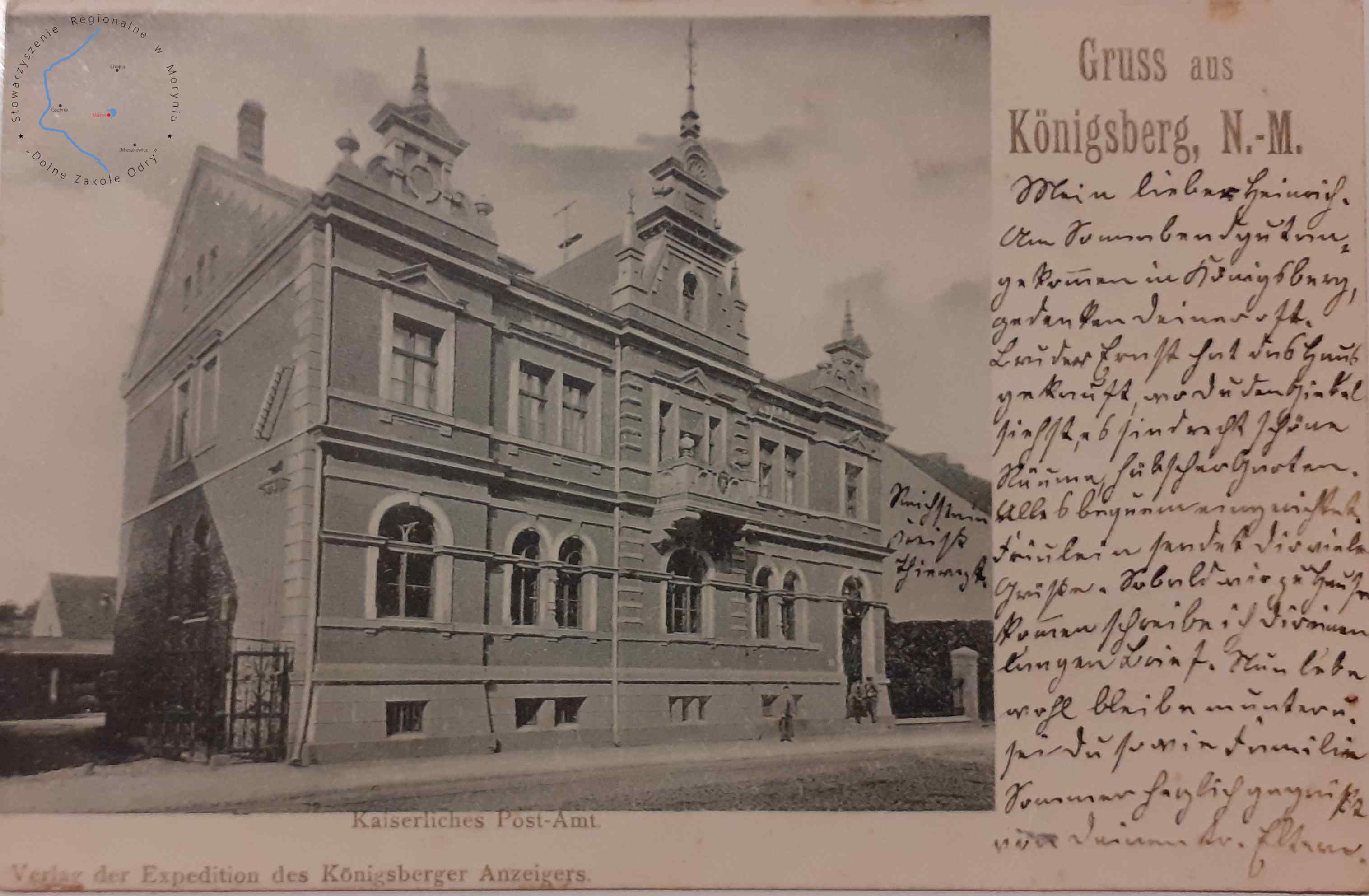 Pocztówka z obiegu, poczta Chojna 16. 8. 1900Wydawca: Expedition des Konigsberger AnzeigersDawny urząd pocztowy na ul...