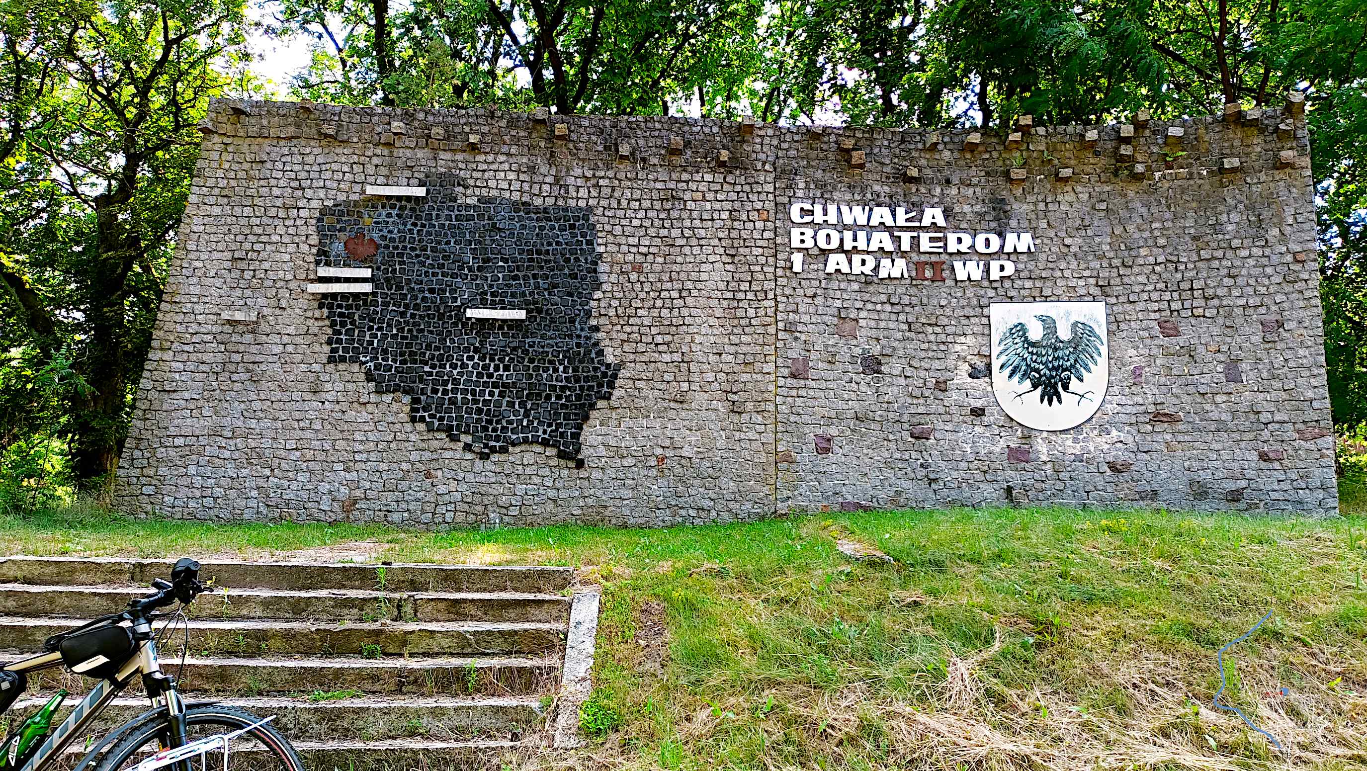 Pokaż na mapie: Kamienna Ściana Chwały – Mapy GoogleKAMIENNA „ŚCIANA CHWAŁY" z mapą Polski, przedstawiająca szlak bojowy 1 Armii Wojska Polskiego (War...