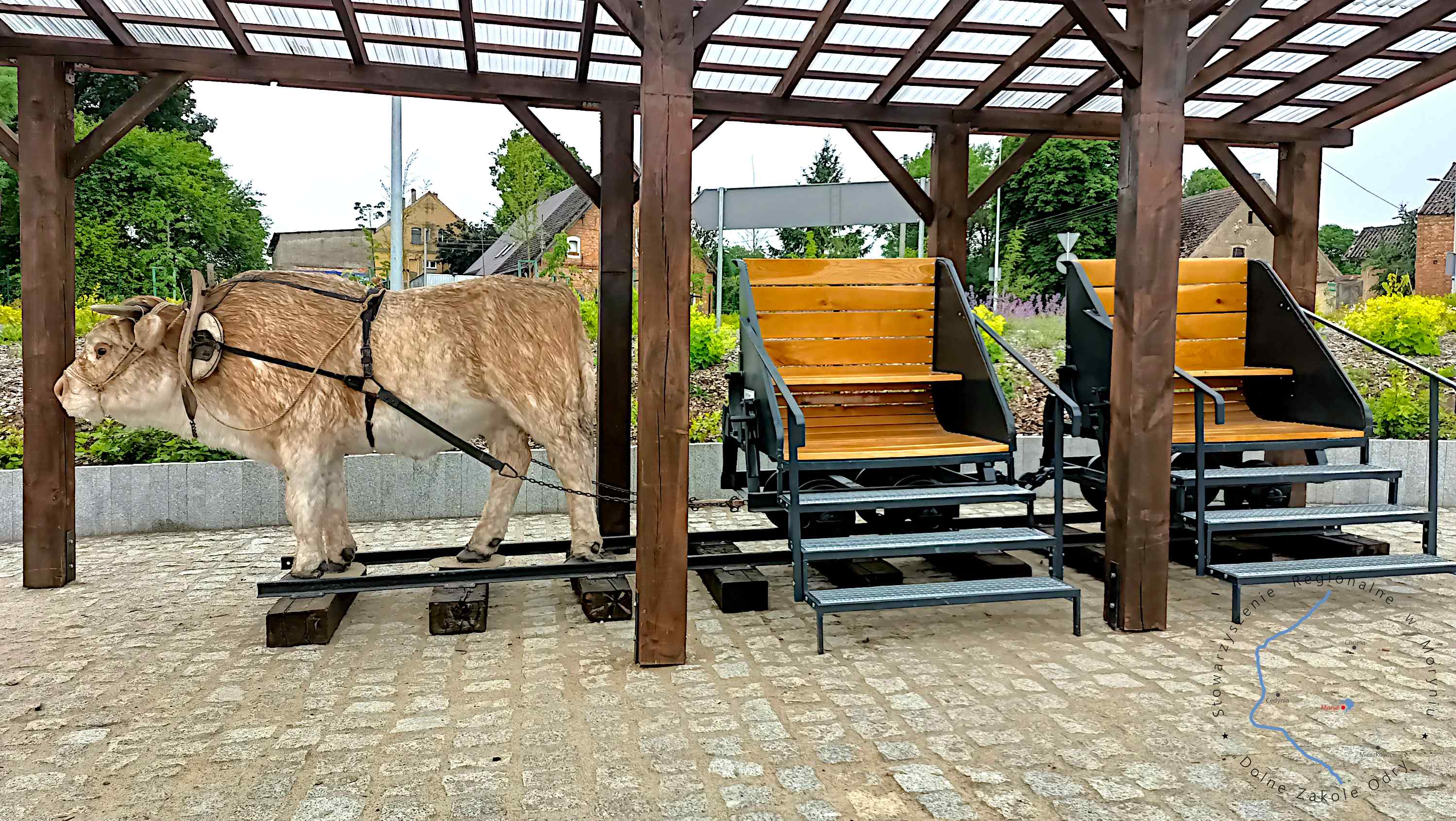 Pokaż na mapie: 52°51'44.6"N 14°15'43.3"E – Mapy Google W Golicach przy ścieżce pieszo-rowerowej można podziwiać replikę kolei folwarcznej. Wózki...